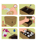 🌿 Kada primijetite bijeli veo na površini zemlje (micelij), kutiju možete staviti na višu temperaturu od 20 do 22°C i jednom dnevno je prskati vodom da se ne bi osušila. Pokrijte poklopcem.